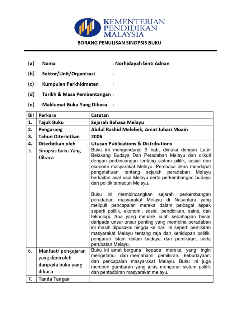 Borang Sinopsis Buku Splkpm Pdfcoffee Com